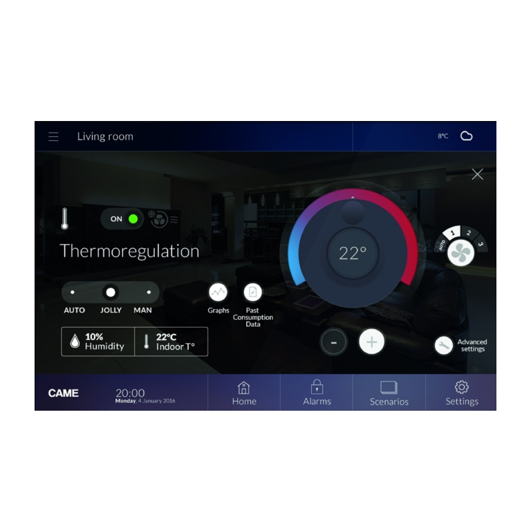 Терминалы с сенсорным экраном системы CAME DOMOTIC 3.0 имеют функцию управления различными температурными зонами с помощью программ, которые могут быть полностью настроены пользователями.
