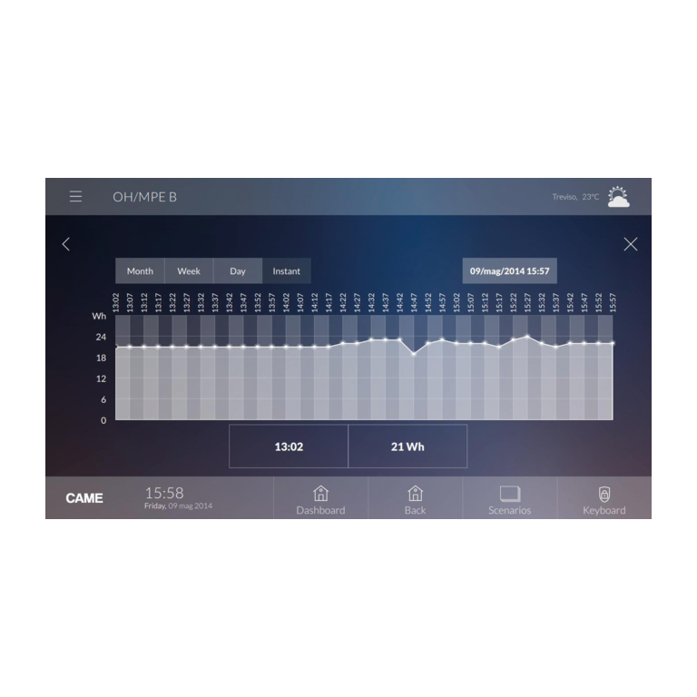 В случае перегрузки по питанию модули управления энергией системы CAME DOMOTIC 3.0 отключают менее важные электрические нагрузки и подключают их позже.